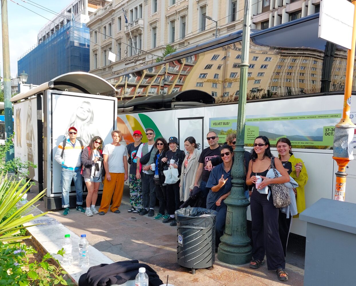 VELVET BUS started its engine 17 years ago and has been travelling periodically around Greece ever since, embracing the country with its activities. It is the only travelling multi-faceted festival, a continuation of VELVET GARDENS FESTIVAL, with a mission to highlight independent artistic creation and to connect local communities with international artistic hubs. At its core is the Velvet Roomcollective, founded by artists The Callas / Aris and Lakis Ionas along with a wide network of collaborators who, for the past 20 years, have been producing publications, films, concerts, and festivals.